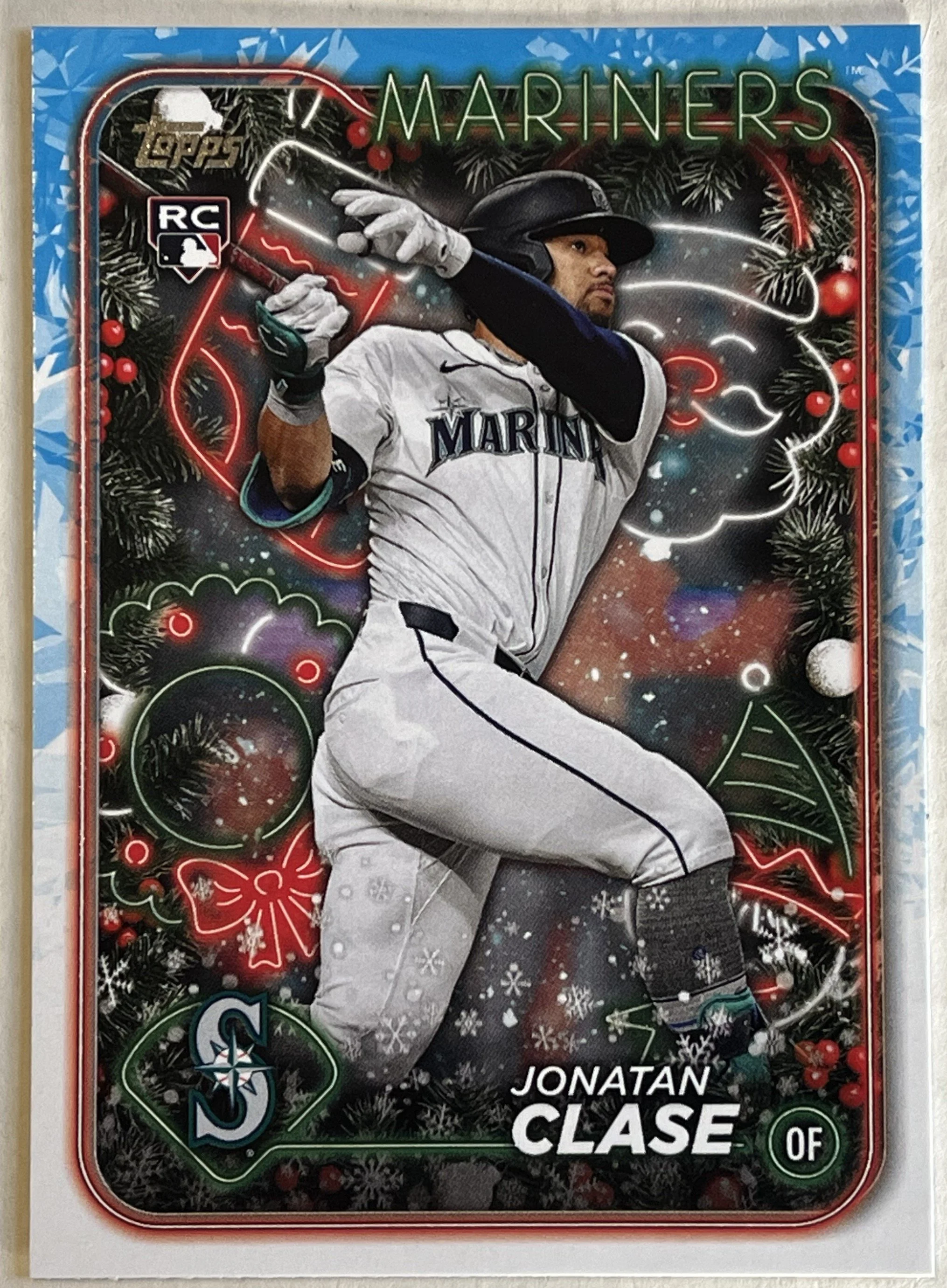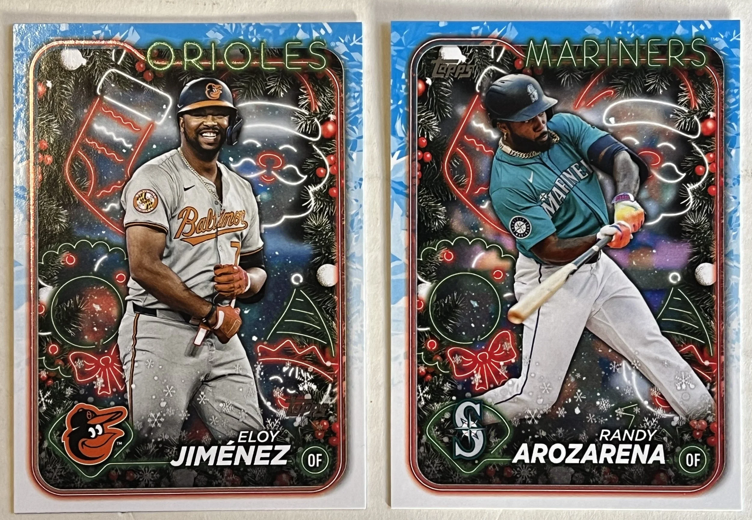 There are 200 cards in this set. One of the things Holiday is known for is being, in some cases, a more updated set than update. For example Eloy Jimenez is portrayed in his Baltimore Orioles uniform and Randy Arozarena is shown in his Seattle Mariners gear. Neither one showed up in the 2024 Topps Update. Only Chrome Update which was released around the same time has these guys with their new teams.