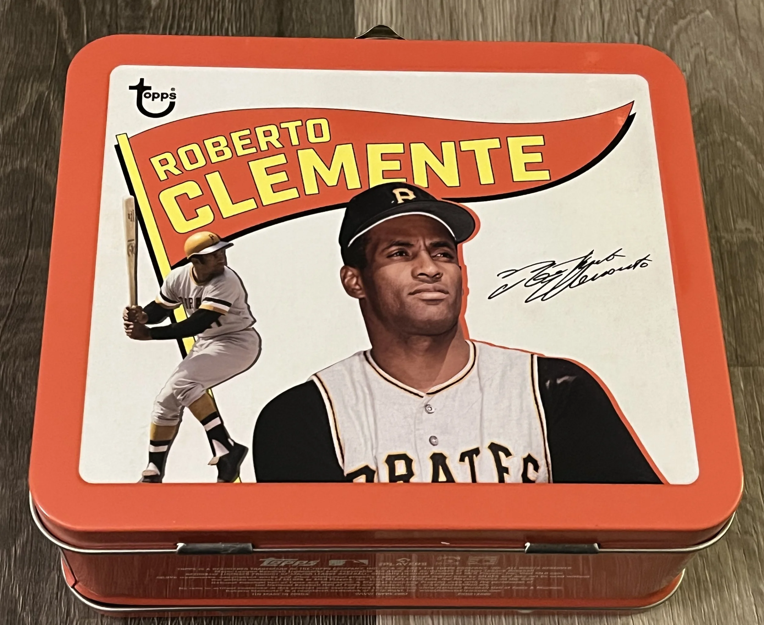 This release is available in three basic formats: retail blasters, hobby boxes and collector’s boxes. The collector’s box is a new format this year. It includes ten packs, one guaranteed auto, an oversized box loader and a lunch box. The lunch box is one of four players: Roberto Clemente, Babe Ruth, Hank Aaron and Jackie Robinson. The lunch box is concealed by a cardboard box so you do not know which one you are getting until you open it.